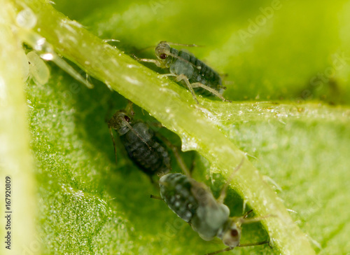 © schankz, Fototapeta premium Aphids on a green leaf in nature