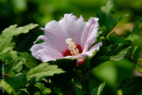 Obraz premium Aphrodite Hibiscus 'Rose of Sharon' in daylight