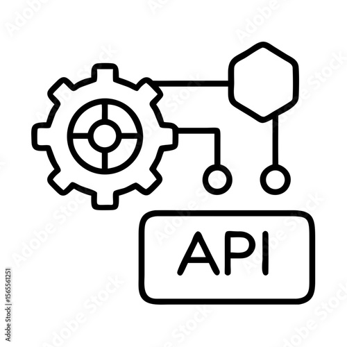 Obraz premium API Integration Connecting Applications with a Gear and Hexagon, Representing...
