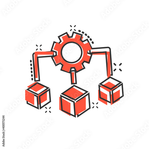 Fototapeta premium Api technology icon in comic style. Algorithm cartoon vector illustration on white isolated background. Gear with arrow splash effect business concept.