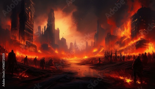 Obraz premium Apocalypse. Burning city, abstract vision