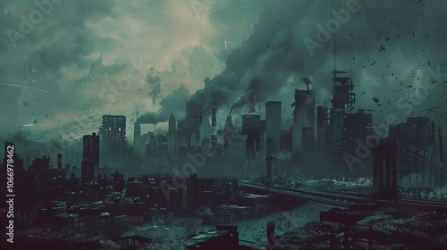 Obraz premium Apocalyptic Cityscape: Ruins of a Once-Thriving Metropolis