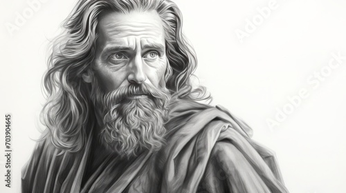 Fototapeta premium Apostle John or Johannes, Charcoal pencil drawing, bible, 16:9