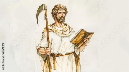 © T Studio, Obraz premium Apostle Matthiass Apostolic Work and Martyrdom - Biblical Illustration on Beige Background with Copyspace