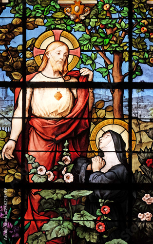 Obraz premium Apparition of the Sacred Heart to Marguerite Marie Alacoque, stained glass...