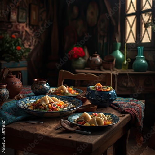 © PhilipSebastian, Fototapeta premium Appetizing Manti dish - Turkish food photography, generative ai