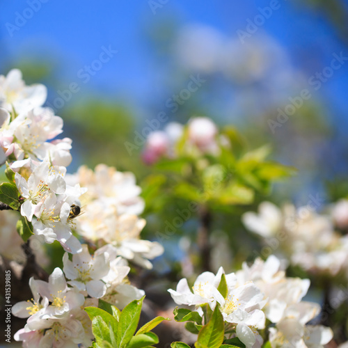 Fototapeta premium Apple blossoms over blurred nature background. Spring flowers. Spring...