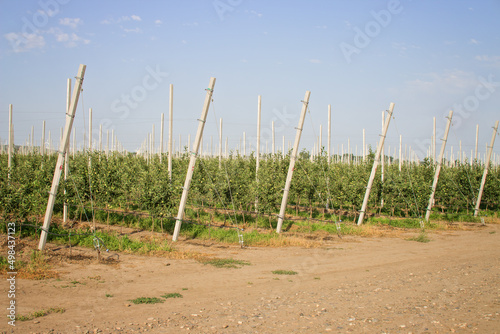© Александра Замулина, Fototapeta premium Apple farm. Rows of trees grow in the orchard. Agribusiness