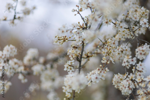 Obraz premium Apple or cherry tree with white flowers blooming