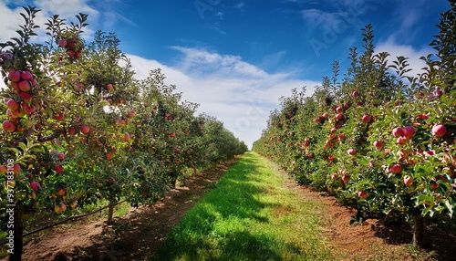 © MSohail, Fototapeta premium Apple orchard with ripe apples on trees.