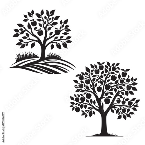 Fototapeta premium apple silhouette set tree - vector image of apple tree - nature tree - fruit tree - apple tree with fruit