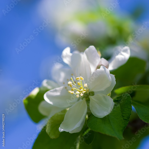 © APHOTOSTUDIO, Fototapeta premium Apple tree blossom against the sky, close-up.