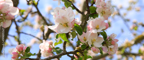 © Swetlana Wall, Obraz premium Apple tree branch isolated on blue sky background.