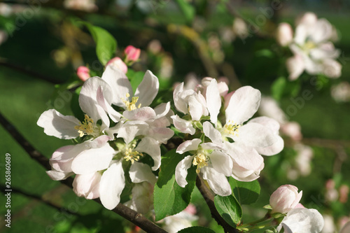 © vinbergv, Obraz premium apple tree flowers blossoming in the sunny garden
