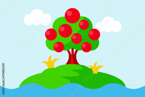 © HAFIJUR, Fototapeta premium Apple tree on island art