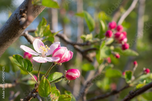 © CoinUp, Obraz premium Apple tree red and white blossoms at spring
