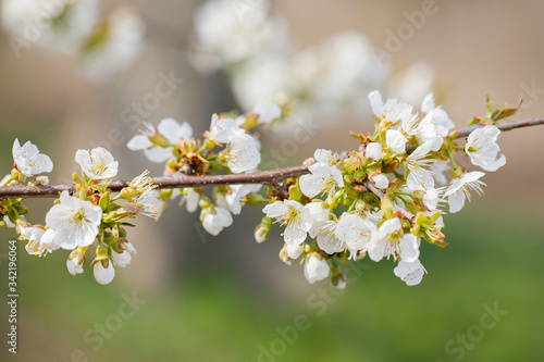 © Юлия Лисяная, Fototapeta premium Apple Tree With Fresh Flowers In A Blossom.