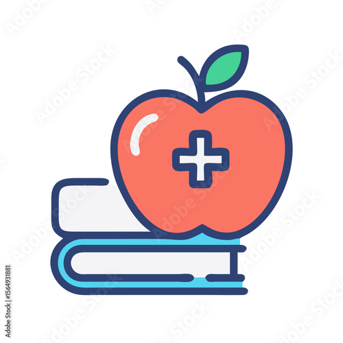 © Evialina, Fototapeta premium Apple with medical cross and book icon for health education