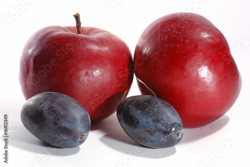 Obraz premium Apples and plums isolated on white background