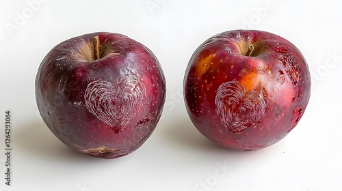 Obraz premium Apples with engraved hearts symbolize love and simplicity in a clean,...