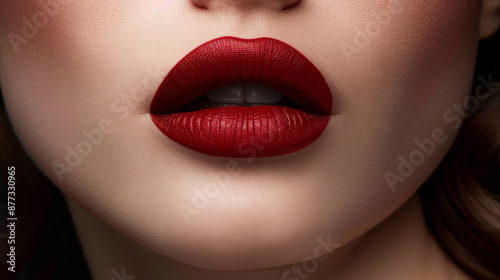 © Rabil, Obraz premium Apply lipstick to your lips.