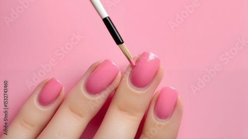 Obraz premium Applying pink nail polish, good for cosmetic advertisement