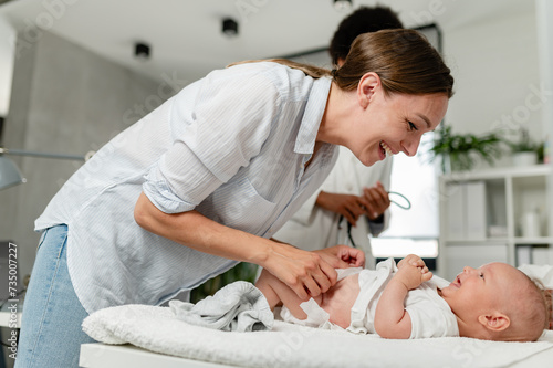 © lordn, Obraz premium Appointment with a consultant pediatrician. Mother and baby at pediatricians office.