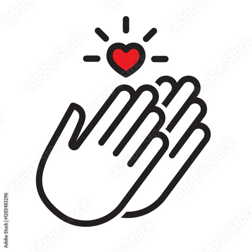 © Will Jaya, Obraz premium Appreciation icon with two hands and heart for gratitude and care