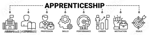 © EKA, Obraz premium Apprenticeship banner web icon vector illustration concept with icons outline symbol background.