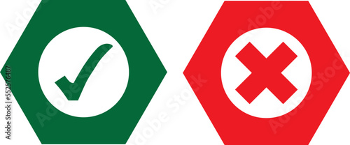 Obraz premium Approved and not approved icon, green check and red cross symbols