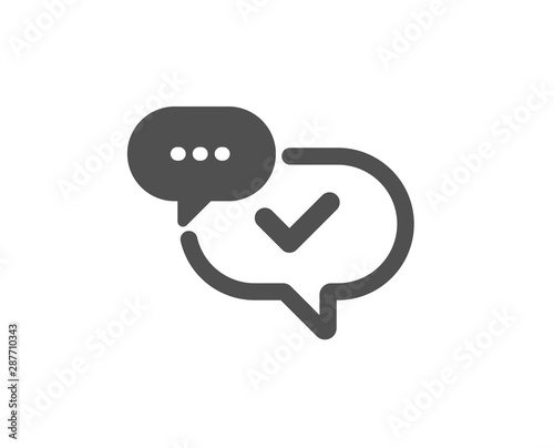 Naklejka premium Approved sign. Check mark icon. Speech bubble chat symbol. Classic flat style. Simple approved icon. Vector