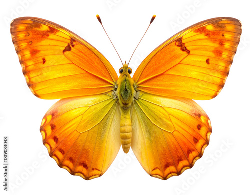© MstMonisha, Fototapeta premium Apricot Sulphur Butterfly with Spread Wings, Detailed Top View, Transparent PNG