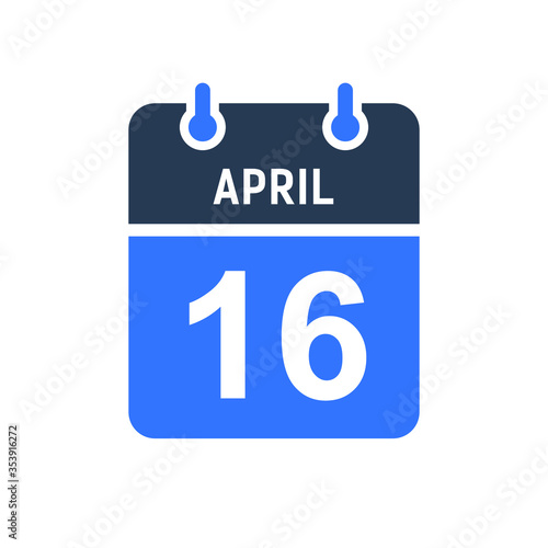 Fototapeta premium April 16 Calendar Date Icon, Event Date Icon, Calendar Date, Icon Design...
