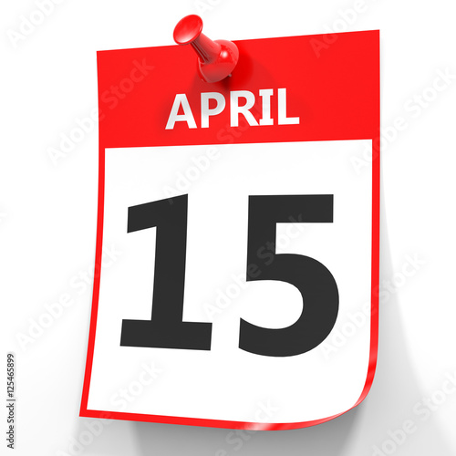 Fototapeta premium April 15. Calendar on white background.
