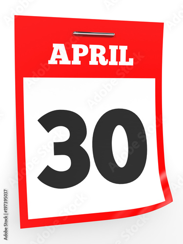 Fototapeta premium April 30. Calendar on white background.