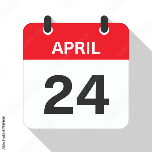 Fototapeta premium April 24 Daily Calendar. Red Theme on White Background
