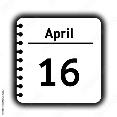 Fototapeta premium April 16st calendar new year day reminder icon note pad diary symbol