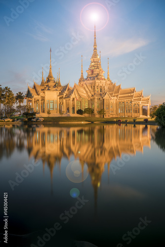 Fototapeta premium 19April2017,Thailand temple Wat bungkum on sunset with lens flare and top of temple:Nakorn ratchasima,Thailand