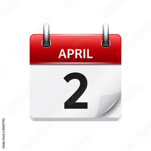 Fototapeta premium April 2. Vector flat daily calendar icon. Date and time, day, month. Holiday.