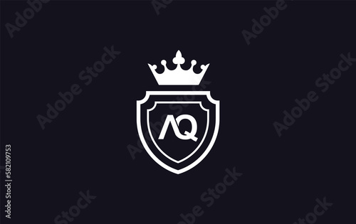 © Nasir Stock Photo, Fototapeta premium AQ Crown and shield symbol icon. royal luxury shield monogram