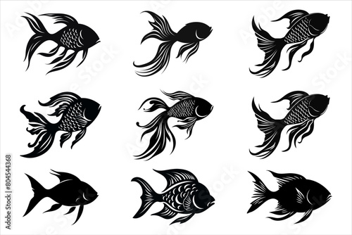 © MD ABDUL MOMIN, Fototapeta premium Aqua Fish silhouettes bundle set, fish silhouette, Aqua fish vector