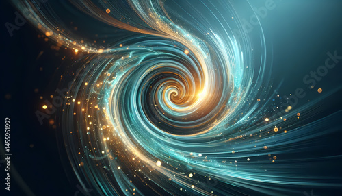 © Journey, Naklejka premium Aqua-Gold motion swirl. Generative AI