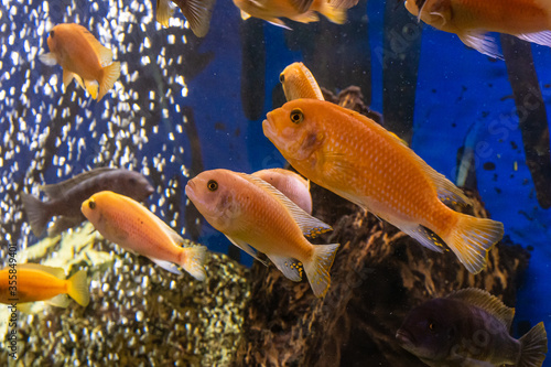 Fototapeta premium Aquarium with cichlids fish from lake malawi