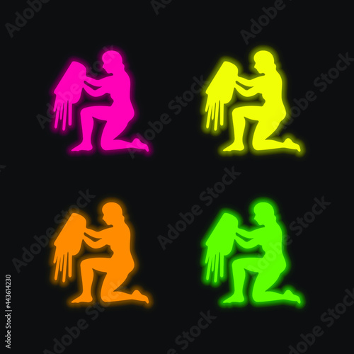Naklejka premium Aquarius Water Carrier Sign Silhouette four color glowing neon vector icon