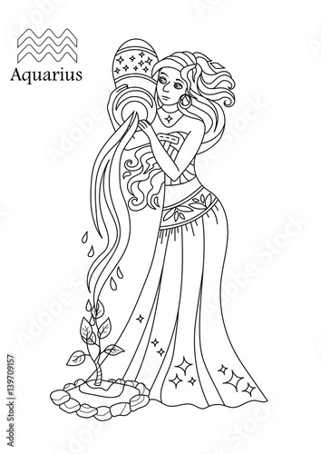 Fototapeta premium Aquarius zodiac sign as a beautiful girl. astrology - vector illustration