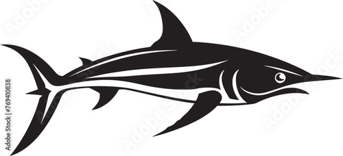 Fototapeta premium Aquatic Sovereign Thresher Shark Black Vector Logo Oceanic Guardian Thresher Shark with Black Emblem