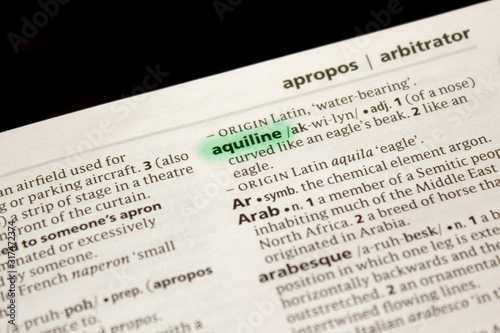 Fototapeta premium Aquiline word or phrase in a dictionary.