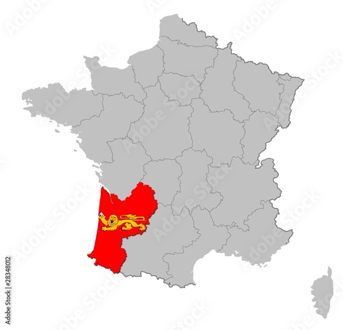 © Sven Knie, Naklejka premium Aquitanien auf den Umrissen Frankreichs