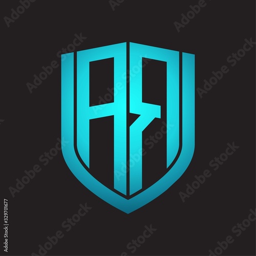 Obraz premium AR Logo monogram with emblem shield design isolated with blue colors on black background