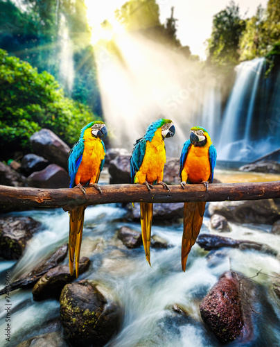 © Dmitry Rukhlenko, Obraz premium Ara ararauna niebiesko-żółta